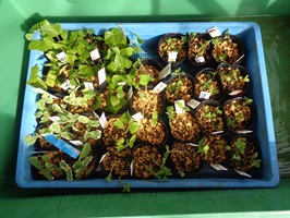 初めにメンバーの5年連続8割出席に対し理事長表彰として所長より感謝状の授与がありました。長年の活動お疲れさまでした。 ・11月22,23日のフェスティバルを控え準備が行われました。 実習者にて4グループに分かれ販売用ポット苗の名札づくりを行いました。 その後、ハウスに移動し苗ポットへの名札付けを行いました。 フェア当日の人数割りは参加者確認をまとめ次回活動日に提示があります。 ・ガーデンで収穫したローゼル、メンバーから頂いたローゼルを全員で枝より果実を取り外し、皆さんで分け持ち帰りました。ジャムとかドライなど皆さん楽しみです。 又残った赤と白の枝はフェスティバルのクラフトやスワッグづくりで使われます。秋冷の雨で肌寒い中、温かいハーブティーをとてもおいしくいただきました。 皆さんお疲れさまでした。S,K