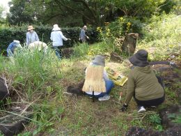 この日も天気が良く、昼間は12.9℃まで上がり、ロックガーデンの除草では寒さを感じられないぐらいでした。ロックガーデンでは、枯れ草や落ち葉を取り除き、花の少ないこの時期のロックガーデンを少し見栄え良くしました。秋フェスティバルの振り返りを実施した後、正月飾りのしめ縄を作りました。しめ縄は、藁のよりと編み込みに苦戦しながら、縁起物の松、ナンテン、扇の飾り付けを行い、皆さん、出来上がったしめ縄飾りを見て満足げでした。