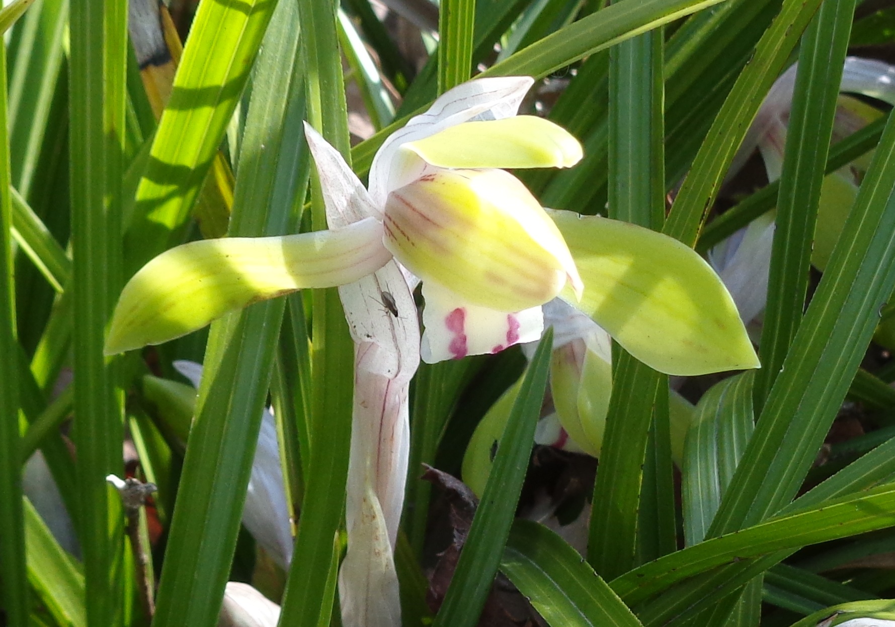ボランティアの吉岡さんからミツバツツジとコバノミツバツツジ、カラスノエンドウとスズメノエンドウとカスマグサの情報提供がありました。時折り雨の降る天候でありましたが、今回のテーマである「シャガ」は、園内の所々で咲き始めであり、今が見頃であった。相談コーナー前のムベ、ミツバアケビを観察。年々花数が少なくなっていると感じた。ハルリンドウは日差しがなかったため花は閉じたまま、シュンランと観察。また、ヤマグルマ、ユズリハ、アオキ、シジミバナなどの花木は開花が観察でき、カルミア、ハナミズキ、ズミなどはこれからの開花が楽しみであった。苗の広場、第一駐車場、三角広場、日本庭園、ロックガーデン、花木展示林を経て樹木見本林、グリーンホールを観察して終了した。